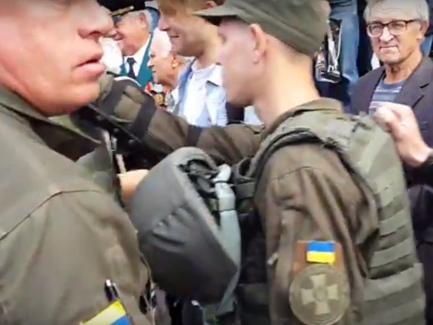 В столице Украины шествие ознаменовалось потасовкой между местными националистами и полицией. Те планировали организовать свою акцию «Смертный полк». Однако активисты все же смогли бросить несколько дымовых шашек в колонну демонстрантов на площади Славы. Кроме того, зафиксированы случаи, когда полицейские задерживали людей, пришедших с георгиевскими ленточками.