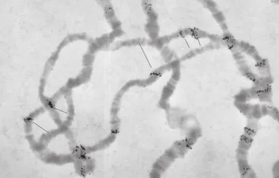 Далее он пишет: «Получение дальнейших доказательств потребовало от меня мобилизации всех моих сил. Я наготовил препаратов политенных хромосом, сфотографировал большое число ядер с хорошо расправленными политенными хромосомами, напечатал фотографии и засел за их анализ. Постепенно, через две недели, я наконец-то научился распознавать все хромосомы и каждую из их 100 секций. Первое, что я установил, — это существенные различия между родительскими линиями. Две линии дрозофилы, с которыми я работал, имели всего 1 или 2 общих сайта гибридизации. Все остальные сайты, чуть больше 20 в каждой линии, оказались в неродственных участках хромосом. Второе — разные клетки одного и того же организма имели одно и то же расположение сайтов гибридизации».
