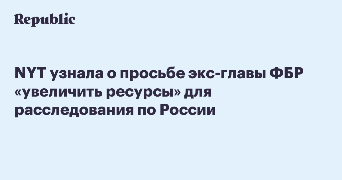 NYT узнала о просьбе экс-главы ФБР «увеличить ресурсы» для расследования по России