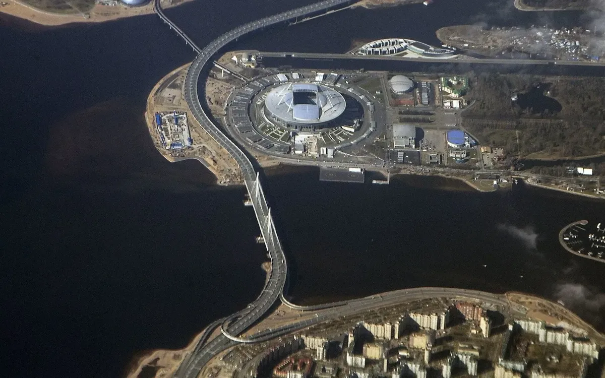 Пропуск болельщиков был организован очень даже неплохо — очередей мы не видели, проверяли и пропускали быстро. Везде были расставлены стюарды и волонтеры, объяснявшие, куда идти и что делать. К стадиону мы шли пешком два километра от станции метро «Крестовский остров» — но, поскольку погода была приличная и не было дождя, сложностей не возникло. Можно было подойти (пройдя примерно такое же расстояние) и с севера — через только что открытый для пешеходов Яхтенный мост. От станций метро ходили автобусы-шаттлы (правда, до площадки, откуда надо было еще 1.5 километра идти пешком). Обратно, поскольку погода испортилась, мы ехали на таком шаттле — было вполне удобно.
