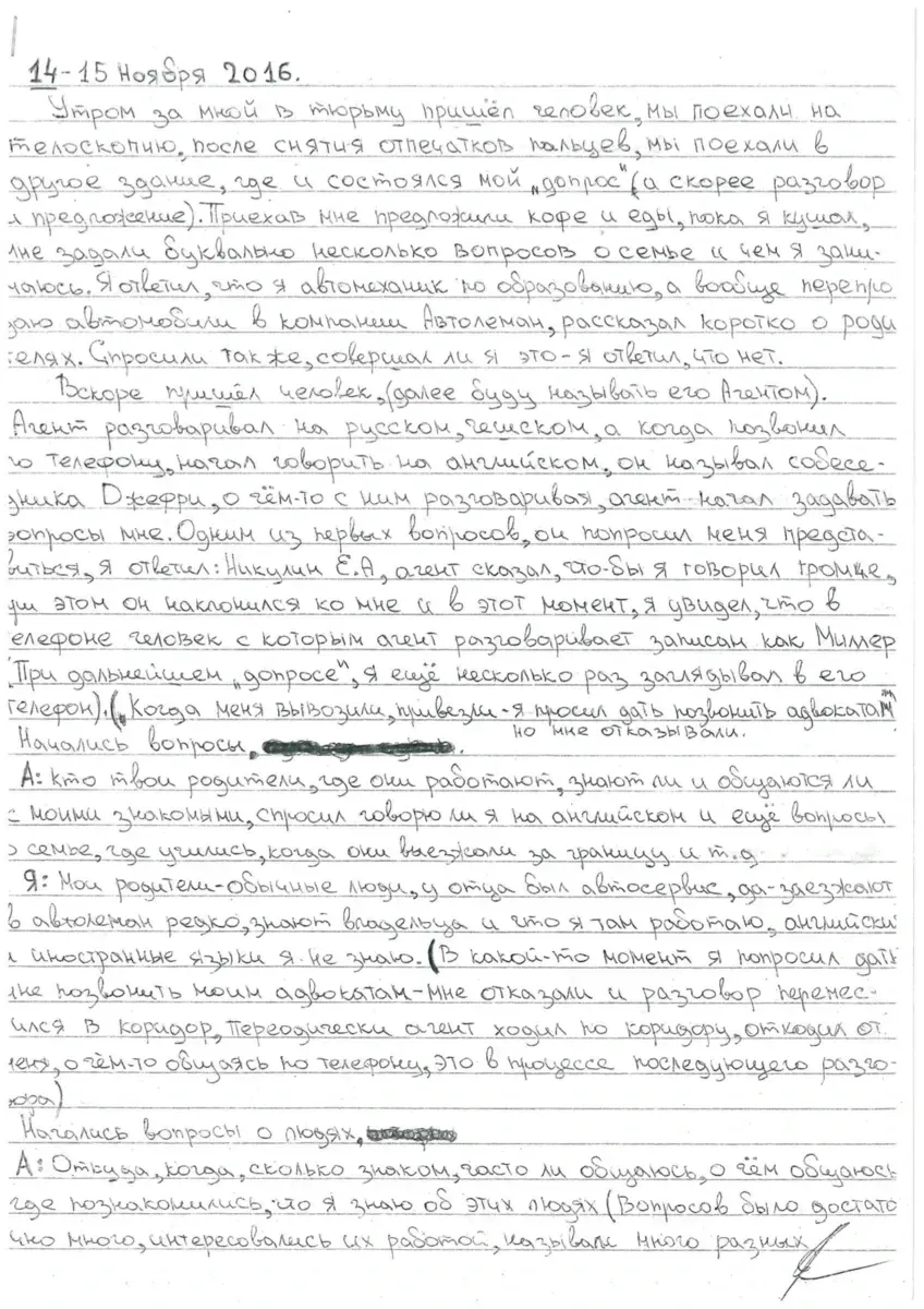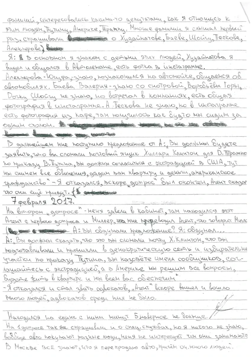 Адвокаты передали письмо, в котором Никулин рассказывает о своей встрече с представителями ФБР. По словам Никулина представитель ФБР сказал ему «Вы должны будете заявить, что вы сломали почтовый ящик Хиллари Клинтон для Дональда Трампа по приказу Владимира Путина, вы должны согласиться с экстрадицией в США, тут мы снимем все обвинения, дадим вам квартиру и деньги, американское гражданство. Я отказался, вскоре «допрос» был окончен».