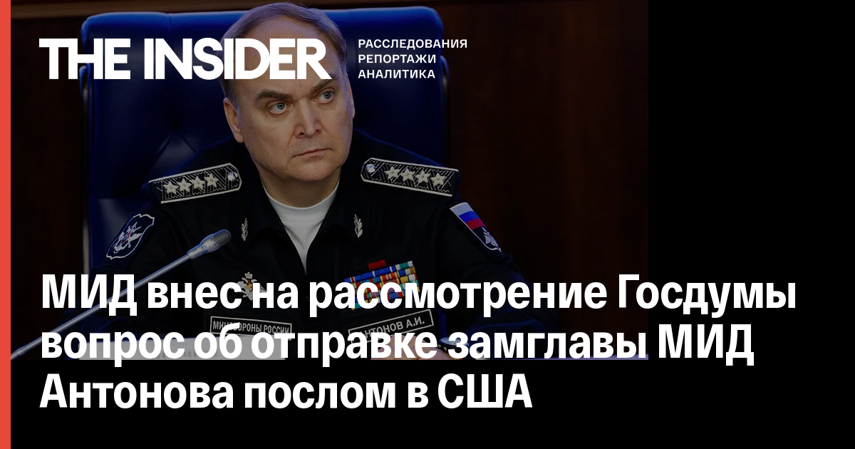 Кандидатура заместителя главы МИД России Анатолия Антонова внесена на рассмотрение Госдумы для назначения на пост посла России в США. Об этом сообщает ТАСС со ссылкой на источник, знакомый с ситуацией.