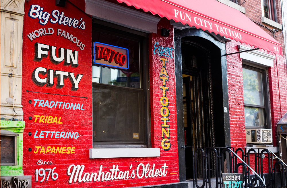 «Фан Сити Тату», старейший тату-салон Манхэттена, нелегально открытый Джонатаном Шоу в 1987-м (тату-салоны в Манхэттене были легализованы только в 1997-м)