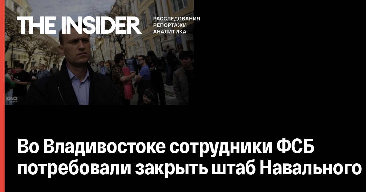 В штаб Алексея Навального во Владивостоке пришли два сотрудника ФСБ и потребовали закрыть помещение. Об этом написал в твиттере глава предвыборного штаба политика Леонид Волков.