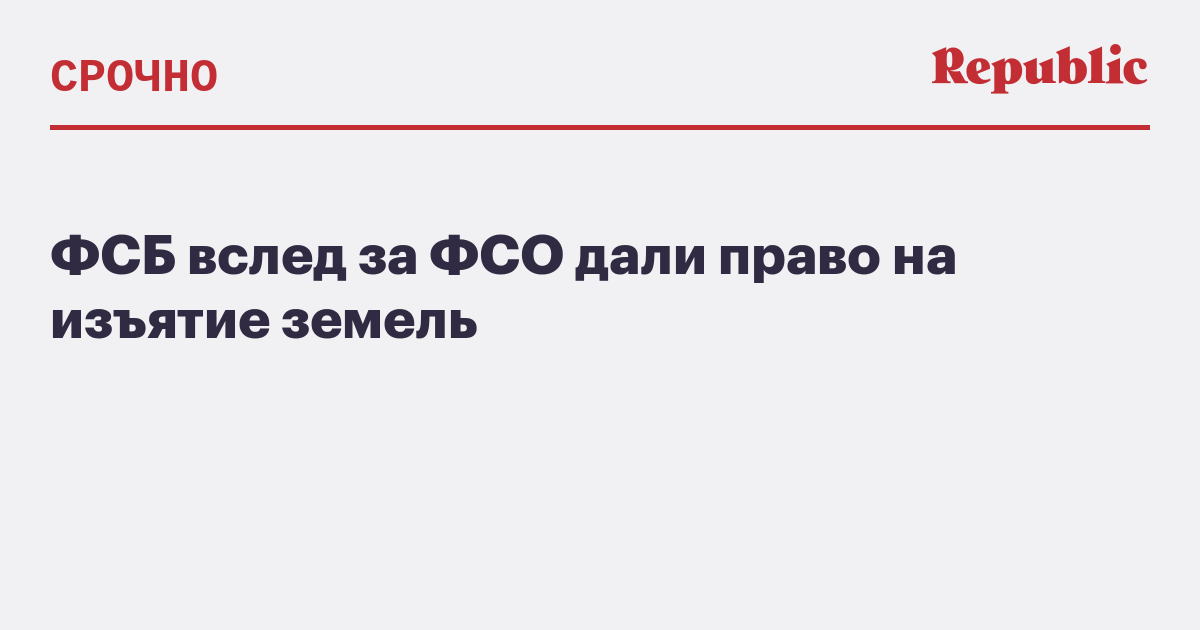 В марте аналогичное право предоставили Федеральной службе охраны (ФСО), которая до этого могла только бессрочно пользоваться земельными участками. Ведомство получило право на изъятие земель «в целях строительства и реконструкции объектов федерального значения, которые необходимы для осуществления полномочий ФСО России».
