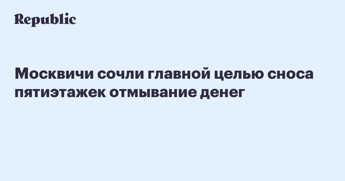 Москвичи сочли главной целью сноса пятиэтажек отмывание денег