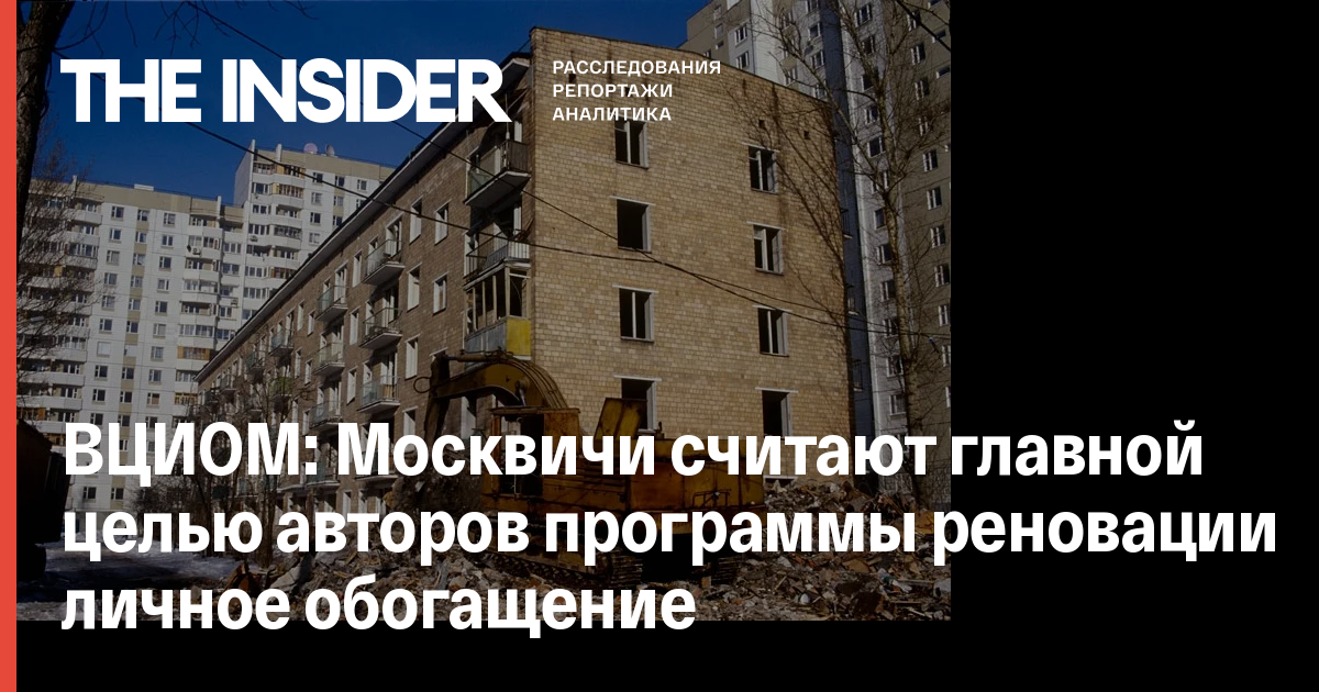 ВЦИОМ: Москвичи считают главной целью авторов программы реновации личное обогащение