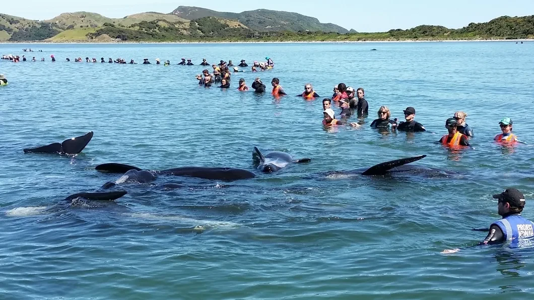 Десятого февраля на мысе Южного острова Новой Зеландии (коса Farewell Spit) на берег выбросились 650 дельфинов-гринд. Примерно 200 из них погибли, однако большинство были спасены местными волонтерами. Подобное в Новой Зеландии случается ежегодно, однако масштаб трагедии в этом году — невиданный.