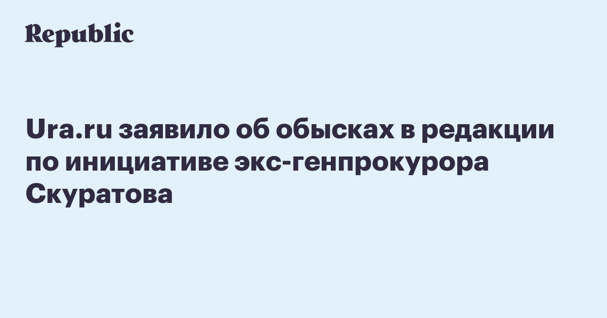В редакции Ura.ru проходят обыски по делу, инициированному бывшим генпрокурором РФ Юрием Скуратовым. Об этом сообщает само издание.