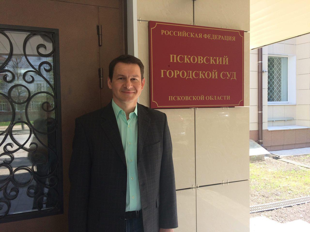 Псковский городской суд приговорил к штрафу в размере 10 тысяч рублей одного из организаторов митинга «Он вам не Димон» Николая Кузьмина, сообщает корреспондент «Псковской губернии» из зала суда. Кузьмин нарушил статью 20.2 КОаП: у него не было бейджика организатора митинга.