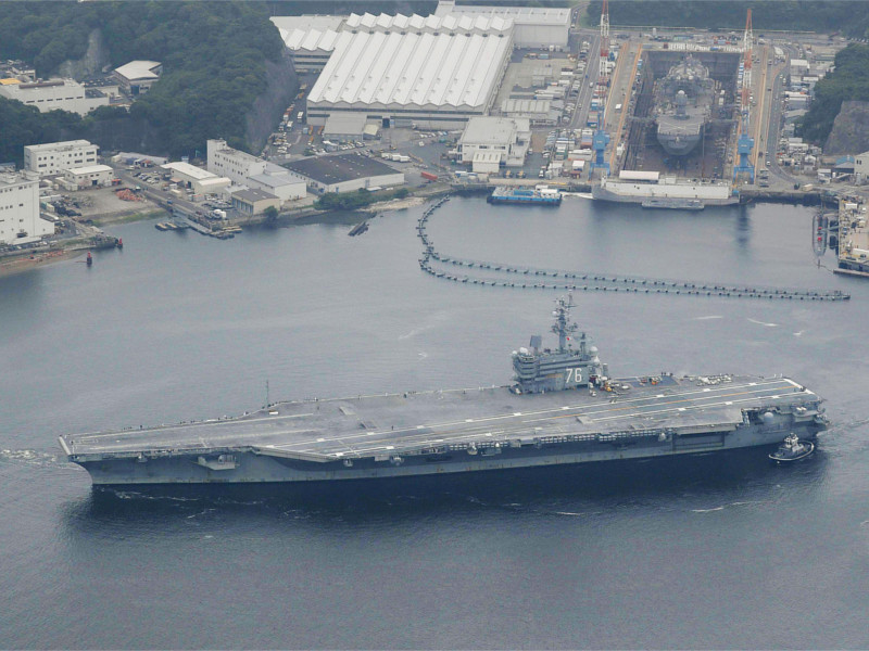 Авианосец Ronald Reagan, возглавляющий ударную группу ВМС США, покинул военно-морскую базу "Йокосука" во вторник после устранения неполадок оборудования. Он в настоящее время движется в направлении Корейского полуострова, сообщили источники телекомпании.