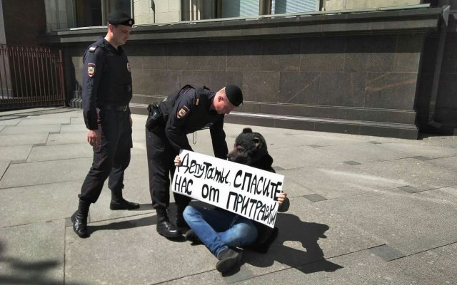 Возле Госдумы задержали проводившего одиночный пикет зоозащитника