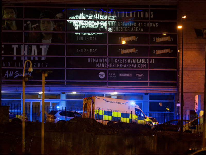 Взрыв на Manchester Arena, которая вмещает больше 20 тысяч зрителей и была заполнена до отказа, произошел в конце выступления Арианы Гранде, когда зрители потянулись к выходу. Взрыв прогремел в зоне билетных касс около здания. В зале началась паника, в давке некоторые дети потеряли родителей.