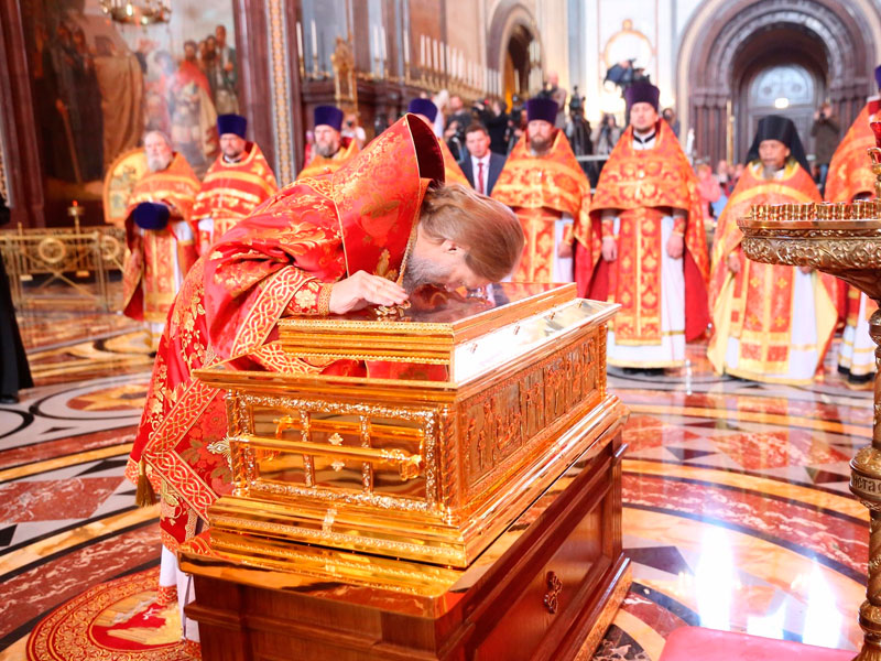 Мощи Николая Чудотворца в Храме Христа Спасителя / twitter.com Мощам святителя Николая в московском храме Христа Спасителя уже поклонилось почти 20 тысяч человек, сообщает руководитель Департамента национальной политики и межрегиональных связей Москвы Виталий Сучков. «Вчера на 21 час успело приложиться 18 600 человек. Подсчеты ведутся через рамки, через которые паломники проходят, так что это единственная объективная цифра», - заявил Сучков 23 мая на брифинге в ХСС.