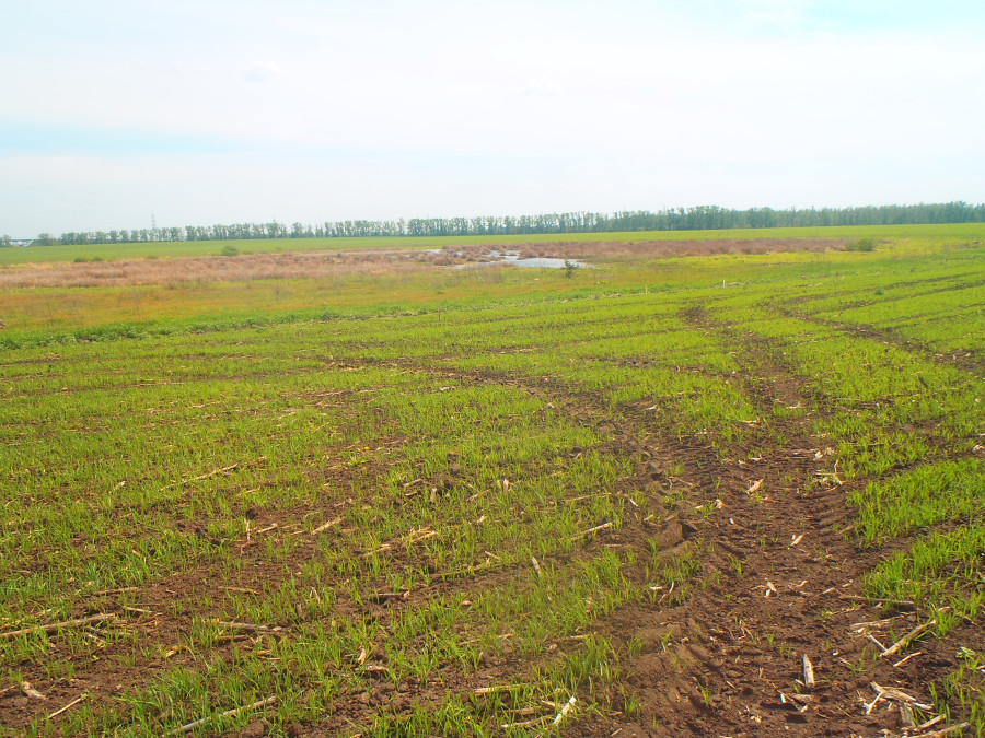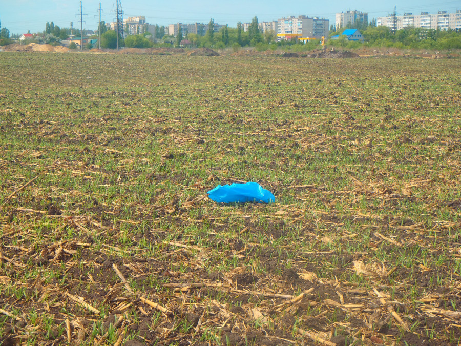 По обработанному полю к лесополосе, за которым озеро. Ветер полощет мусорный пакет.