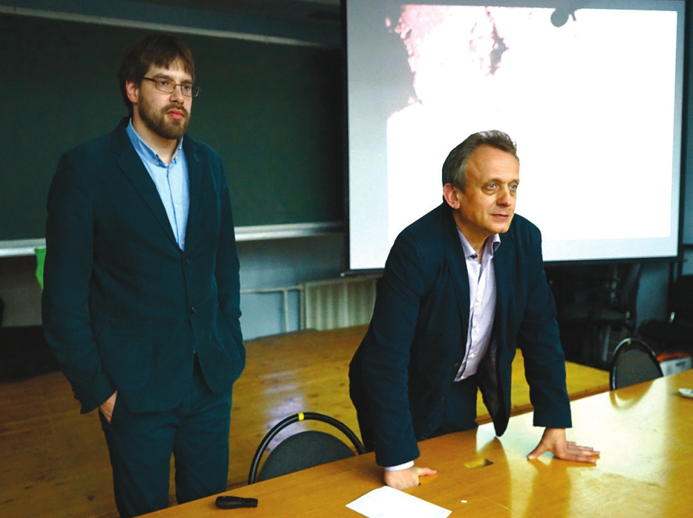 18 апреля 2017 года в Московском центре непрерывного математического образования прошла лекция доктора филологических наук, члена-корреспондента РАН Алексея Гиппиуса и кандидата исторических наук, старшего научного сотрудника Института славяноведения РАН Саввы Михеева «Из эпиграфики Софии Киевской и Софии Новгородской: новые находки и интерпретации».