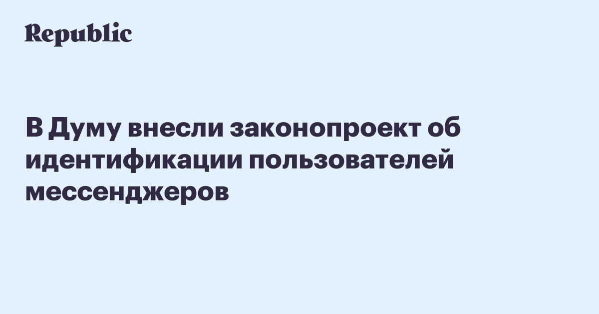 «Законопроект определяет понятие организатора обмена мгновенными сообщениями и возлагает на данного субъекта обязанность обеспечивать передачу электронных сообщений только тех пользователей сети “Интернет”, которые идентифицированы в порядке, устанавливаемом Правительством Российской Федерации», – уточняется в пояснительной записке.
