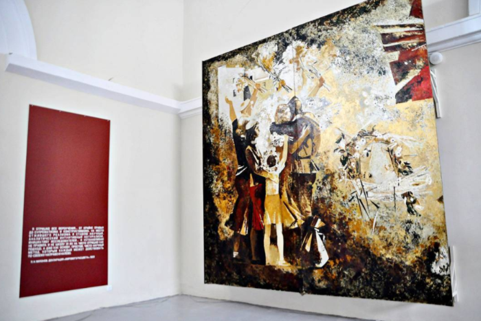 В манеже Конюшенного ведомства открылась выставка «Большие картины». В экспозиции представлены 19 картин из коллекции большеформатной живописи ХХ века Государственного музея истории Петербурга.