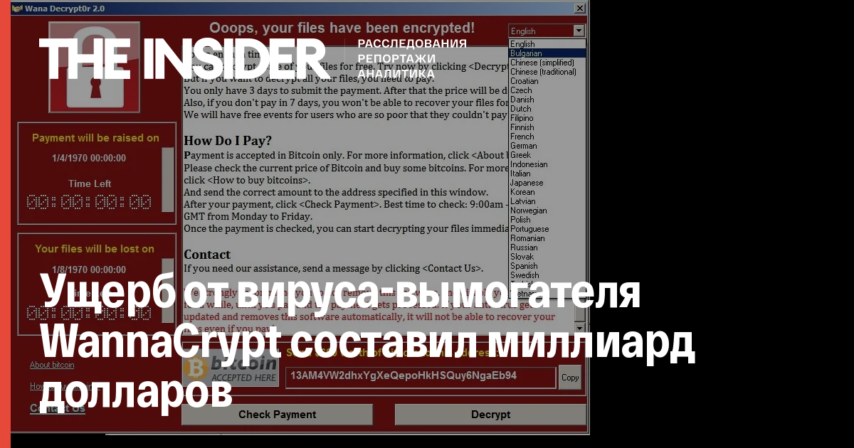 Ущерб от вируса-вымогателя WannaCrypt составил миллиард долларов