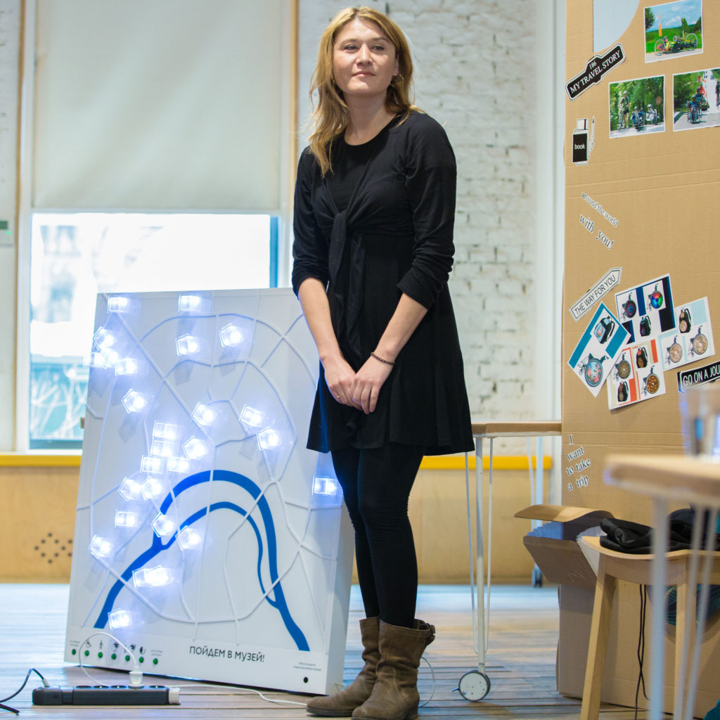 В зависимости от наличия в музее той или иной опции (специально обученные гиды для людей с ментальной инвалидностью, особые программы для незрячих, экскурсии для слабослышащих, адаптация пространства под нужды посетителей на колясках и т. д.) в обозначающем его домике загорался свет. На финальной презентации музейная карта вызвала не меньше восторгов, чем сенсорная одежда от наших коллег. В результате нам даже согласовали дополнительное финансирование и предложили продолжать. И это очень здорово, потому что в планах у нашей пятерки еще и онлайн-приложение. Смысл его в том, чтобы вся размещенная информация проходила дополнительную проверку пользователями, и они писали бы отзывы по горячим следам. Так удастся избежать фальсификаций и максимально снизить риск размещения неверных данных, а значит, люди с инвалидностью не будут понапрасну терять время и ездить в места, на самом деле для них не приспособленные.