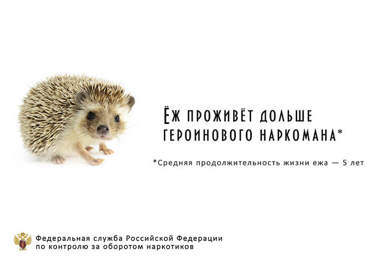6. «Дольше наркомана». Серия постеров на тему наркозависимости. В них приведены сравнения продолжительности жизни различных животных и людей, употребляющих наркотики. Автор проекта: студентка Светлана Зоткина.