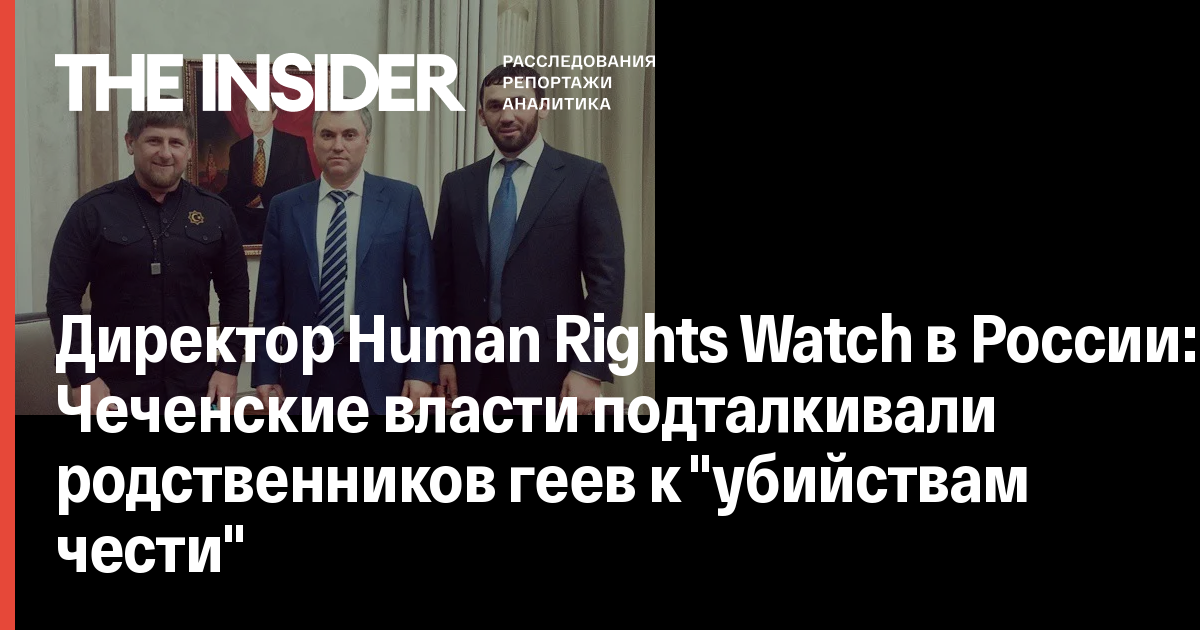 Директор Human Rights Watch в России: Чеченские власти подталкивали родственников геев к "убийствам чести"