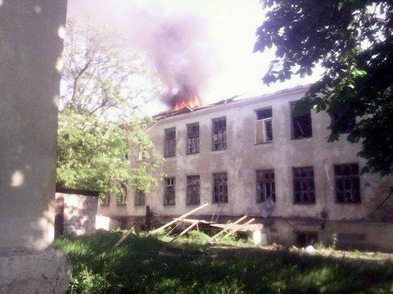 В ходе обстрела пострадали здания школы и больницы. Среди пострадавших двое пациенток, утверждает национальная полиция Украины.