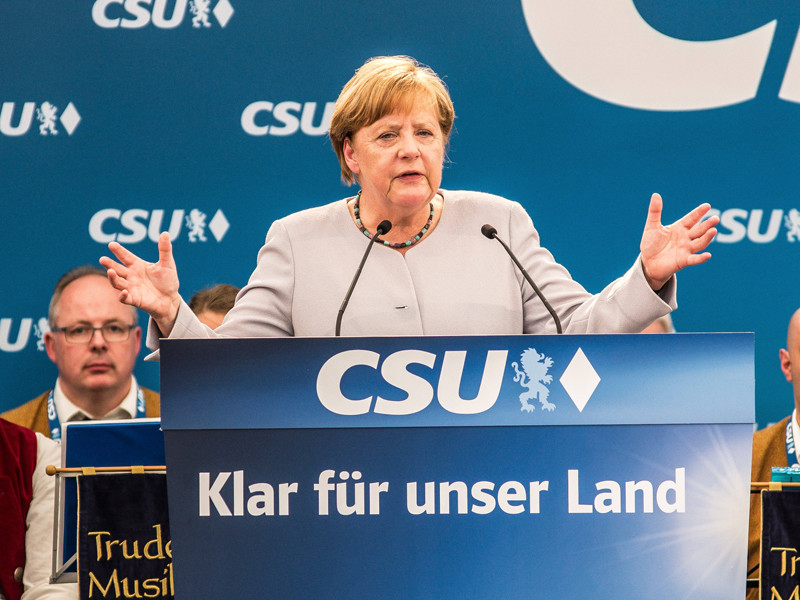 В Мюнхене Меркель вместе с премьер-министром Баварии Хорстом Зеехофер приняла участие в предвыборном мероприятии в "пивном шатре".