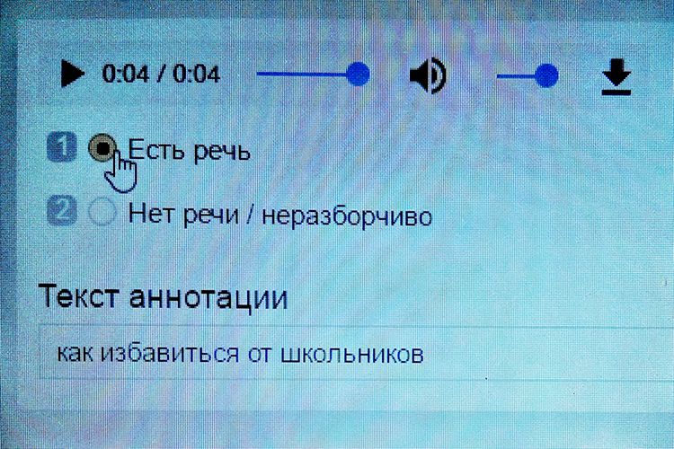 Была ещё работа немного поинтереснее, с голосовыми запросами, которыми люди вызывают что-то, что им нужно в интернете. «Секс красивые пары», «готовые домашние задания», или там всякие «парабола имеет значение игрек и выходит из неё что-то нибудь там», и вот люди просят: интернет, реши мне эту задачку. Это надо слушать и расшифровывать. Иногда там просто какое-нибудь шкрябание телефона обо что-нибудь или странные нечленораздельные звуки. Но это хотя бы более интересно и оплачивается лучше. На задание уходит примерно двадцать минут, и за него тебе платят четыре цента. Всё равно маловато.