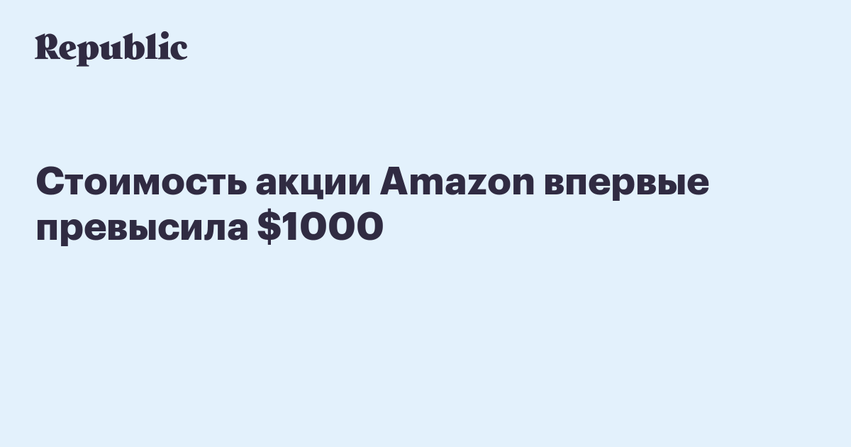 Стоимость одной акции компании Amazon впервые превысила $1000. Об этом сообщает AP.