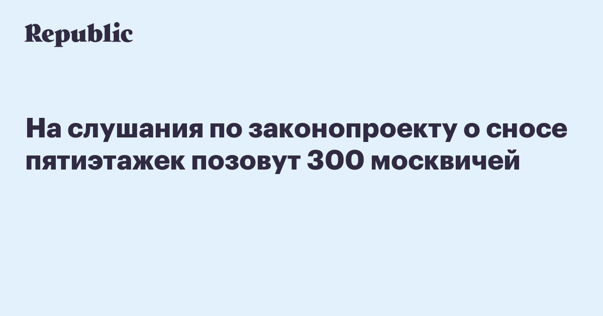 На слушания по законопроекту о сносе пятиэтажек позовут 300 москвичей