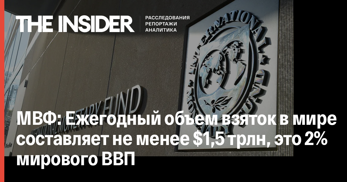 Международный валютный фонд оценил экономическую стоимость взяток в 2% мирового ВВП, что составляет не менее 1,5 тиллионов долларов в год. Об этом пишет «Коммерсантъ», который проанализировал дискуссионный доклад двух департаментов МВФ под названием «Коррупция: цена вопроса и стратегии ослабления».