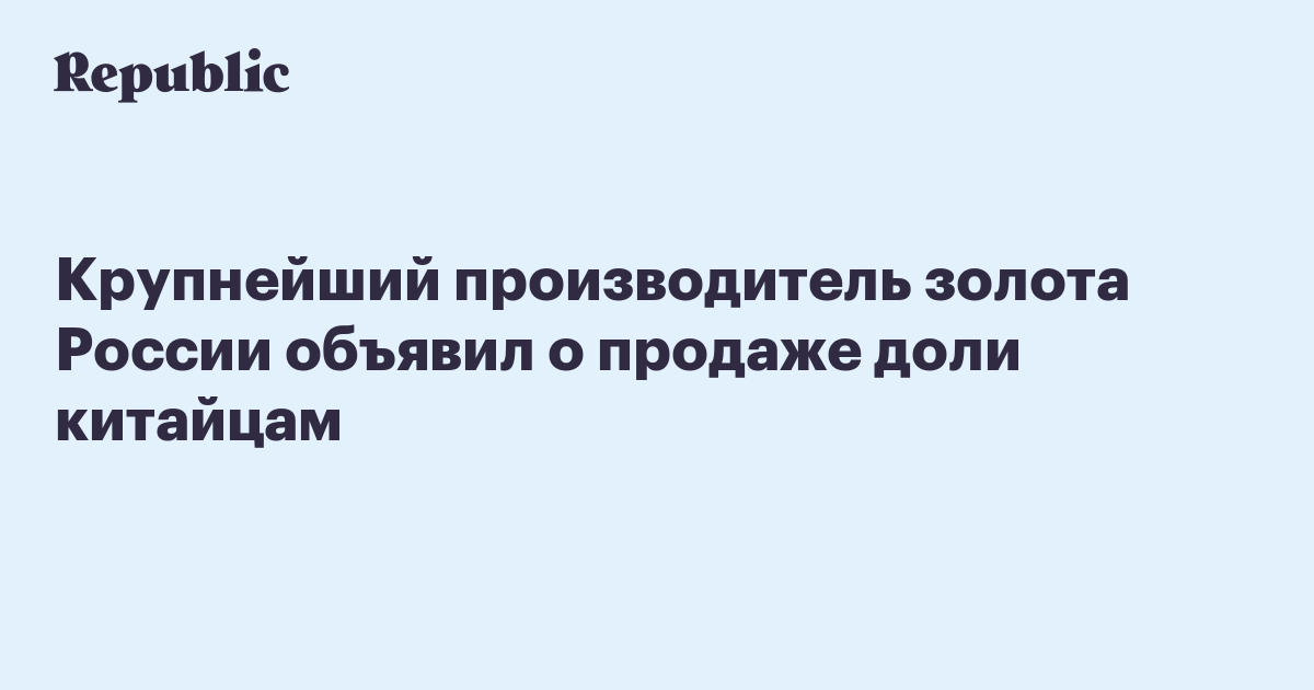 Крупнейший производитель золота России объявил о продаже доли китайцам