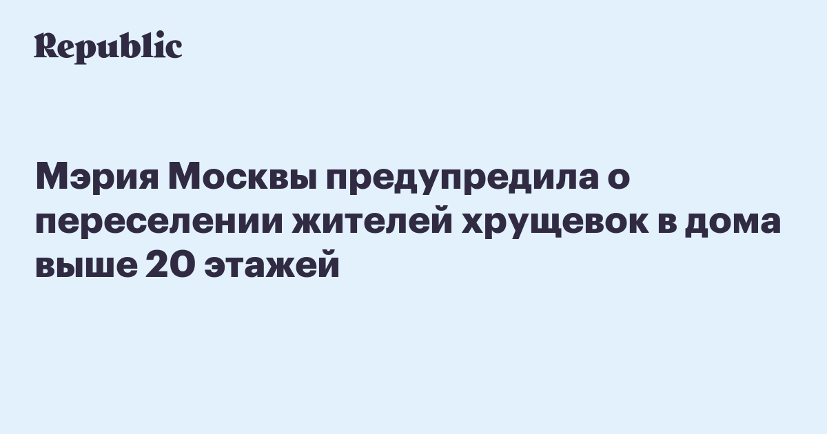 Мэрия Москвы предупредила о переселении жителей хрущевок в дома выше 20 этажей