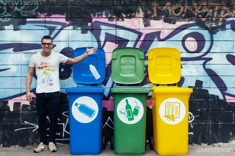 Кампании Гринпис про раздельный сбор мусора построены на удивлении аудитории: тема подается позитивно, ярко, создается образ прогрессивного человека. В 2014 году лицом кампании «Миллион за раздельный мусор» стал фронтмен группы Therr Maitz Антон Беляев.