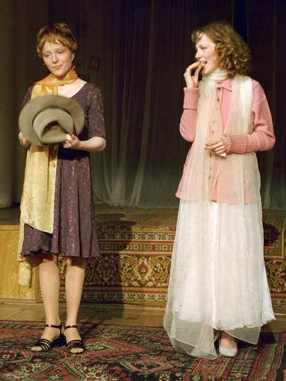 © Владимир Вяткин / РИА Новости Актрисы Ксения и Полина Кутеповы в сцене из спектакля «Таня-Таня» режиссера Петра Фоменко, 1997 — Как думаешь назвать эту пьесу?