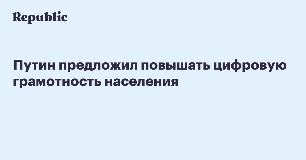 Президент России Владимир Путин заявил о необходимости добиться всеобщей цифровой грамотности. Такое предложение он высказал во время Петербургского международного экономического форума (ПМЭФ), трансляцию которого ведет «Дождь».