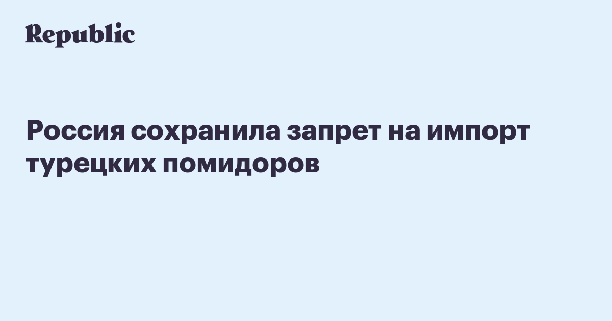 1 июня глава Минсельхоза Александр Ткачев говорил, что запрет на импорт помидоров из Турции продлится еще не менее трех лет. Он пояснил, что такой срок требуется России для развития собственного производства томатов.