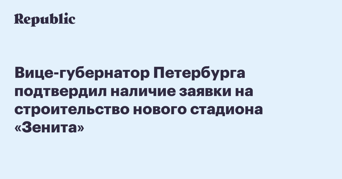 Вице-губернатор Петербурга подтвердил наличие заявки на строительство нового стадиона «Зенита»