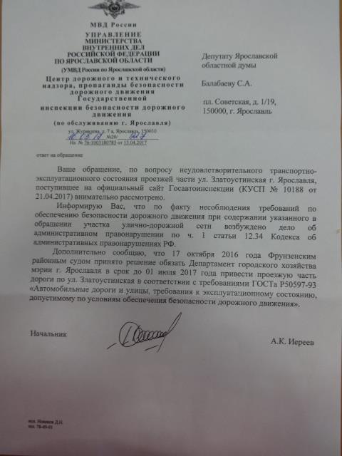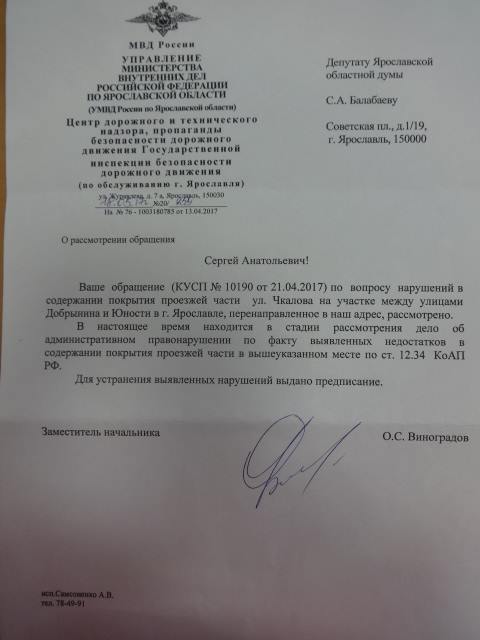 ГИБДД выявила нарушение и внесла представление на его устранение в адрес мэрии Ярославля. Участок проезжей части на Чкалова между улицами Добрынина и Юности должен быть отремонтирован по предписанию Инспекции. Ждём ремонта и контролируем ход его выполнения вместе.
