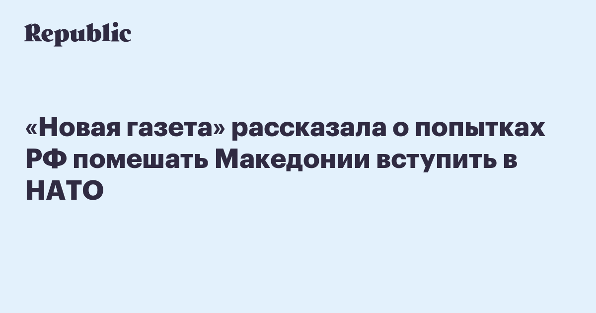 «Новая газета» рассказала о попытках РФ помешать Македонии вступить в НАТО