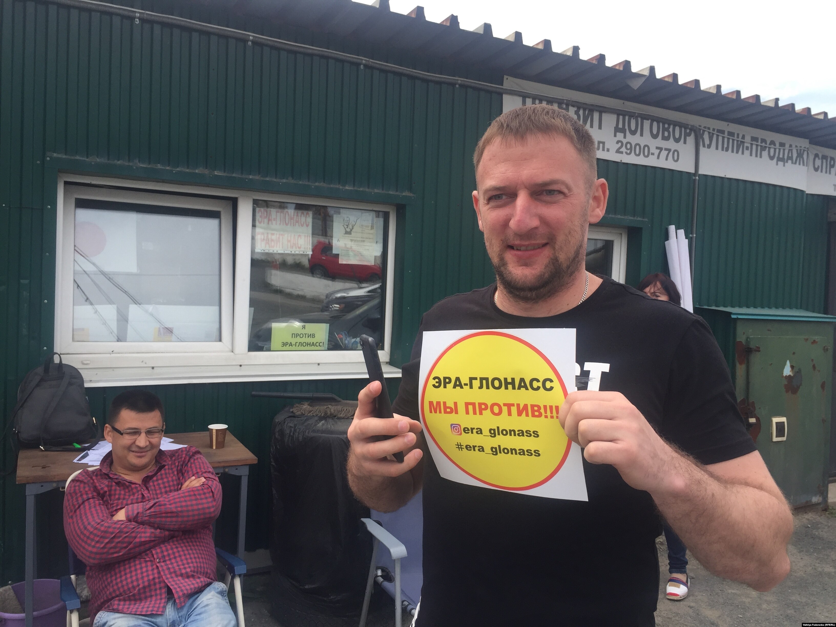 Плакаты против ЭРА-ГЛОНАСС и наклейки на машины распечатали сами автопродавцы. Но берут их и покупатели. Стоят на основных транспортных узлах и развязках в одиночных пикетах.