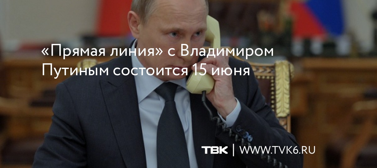 «Пятнадцатого июня 2017 г. в 12:00 по московскому времени в эфире телеканалов "Первый“, "Россия 1“, "Россия 24“, радиостанций "Маяк“, "Вести FM“ и "Радио России“ выйдет ежегодная специальная программа "Прямая линия с Владимиром Путиным“».