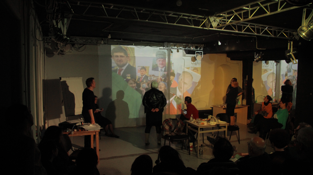 Спектакль «Правозащитники» — о реальных людях, избравших для себя эту миссию и обреченных на вечную неравную борьбу с государственной машиной, с презрением послушного большинства, с клеветой и ложью. На премьеру авторы — Елена Гремина и Анна Добровольская — пригласили только что вышедшего на свободу Ильдара Дадина, который после спектакля принял участие в обсуждении и отвечал на вопросы зрителей.