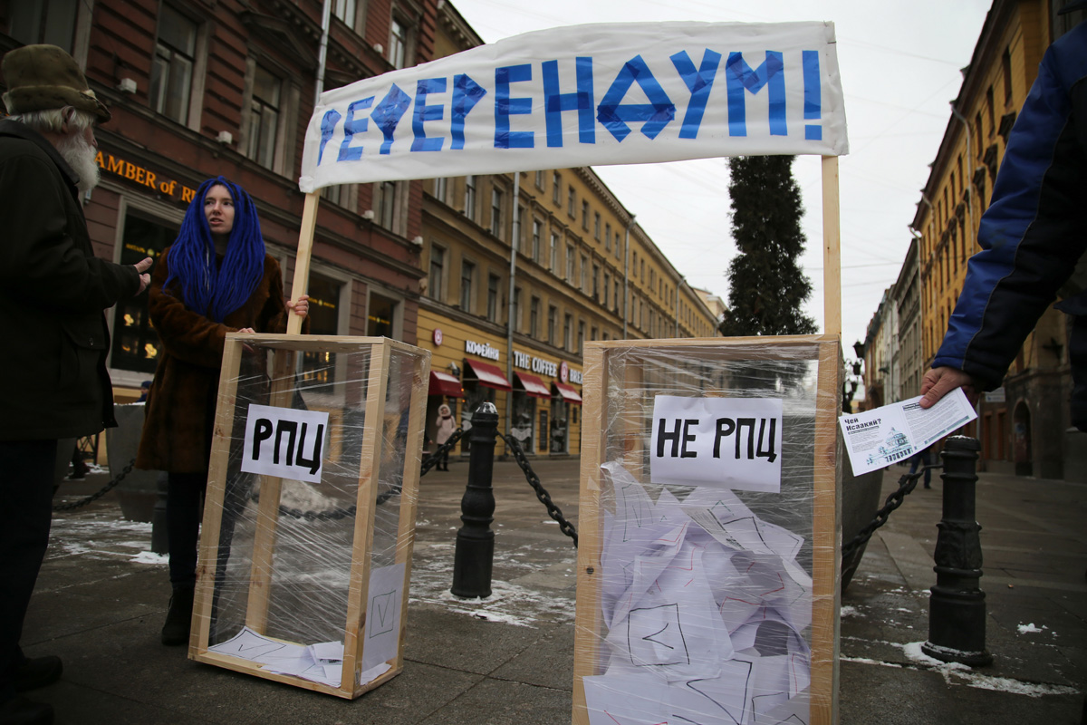 Передача Исаакиевского собора православной церкви взволновала весь Санкт-Петербург. Долгое время местные власти сопротивлялись просьбам патриархии, однако в начале этого года сдались. В ответ в феврале и марте в городе прошли несколько многотысячных акций. Чиновники заверили, что к горожанам обязательно прислушаются, «источники» федеральных СМИ в администрации президента заверяли, что решение передать Исаакий церкви исходит не из Кремля и там эту затею не поддерживают. Параллельно готовилась передача собора церкви. В марте инициативная группа, в составе которой были шесть депутатов заксобрания Санкт-Петербурга, в том числе «яблочник» Борис Вишневский, представитель Партии роста Максим Резник и лидер фракции эсеров Алексей Ковалев, подала документы в горизбирком, тот не нашел в них нарушений и передал в заксобрание. Дальше городского парламента дело не пошло. Единороссы заявили, что вопрос референдума не соответствует законодательству: на городской плебисцит выдвигаются вопросы местного значения, а передача Исаакия — вопрос федеральный. На заседании заксобрания вопрос так и не был рассмотрен, хотя по закону парламентарии должны были сделать это за 20 дней (избирком одобрил заявку еще 28 марта).