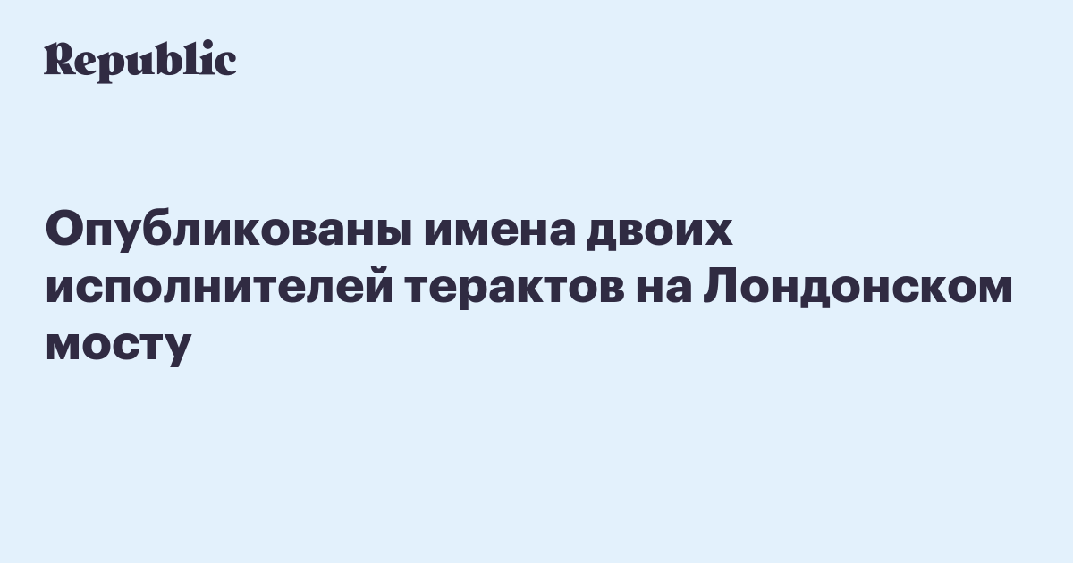 Инцидент произошел в ночь на 4 июня. Фургон въехал в людей на Лондонском мосту, после чего из автомобиля вышли три человека и напали на прохожих с ножами в районе рынка Боро-маркет.