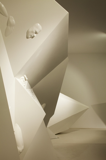 Нижний уровень павильона отдан Recycle Group и Саше Пироговой. Художники из Краснодара, работающие с темой мира-антиутопии современных технологий, и видеохудожница, занимающаяся исследованиями динамики человеческого тела в пространстве (по образованию, что характерно, физик). У Recуcle Group, которых сложно упрекнуть в отсутствии честности и старания, — белое пространство с белыми же (как и у Брускина) скульптурами, которые, однако, спрятаны, вмонтированы в наросты на стенах. Метафора, позаимствовавшая сюжет из Данте — грешники в ледяных глыбах. Кстати, это и есть ключевой образ экспозиции, нарочито повторяющийся во всех комментариях к выставке. В нем легко угадывается кураторское желание работать с высоким стилем и с вечными темами. Грешники у Recуcle Group — это грешники виртуального пространства, забаненные различными системами интернет-контроля (читай: выключенные из виртуального бессмертия, то есть убитые). Посмотреть инсталляцию можно, лишь скачав специальное приложение и наведя экран смартфона на белые глыбы. Интернет, к сожалению, работает с перебоями, российский павильон пользуется, как это обычно бывает, большой популярностью, поэтому скачать приложение удается не всегда. Довольно ироничное дополнение к работе Recуcle Group, отсылающей к риторике наших депутатов, которые критикуют интернет и опасности, в нем таящиеся. Антиутопичность виртуальности, отсутствие обещанных в ней свободы и бессмертия превращают это пространство в некую ледяную пещеру, откуда не выбраться, пока тебя кто-то не освободит через экран смартфона.
