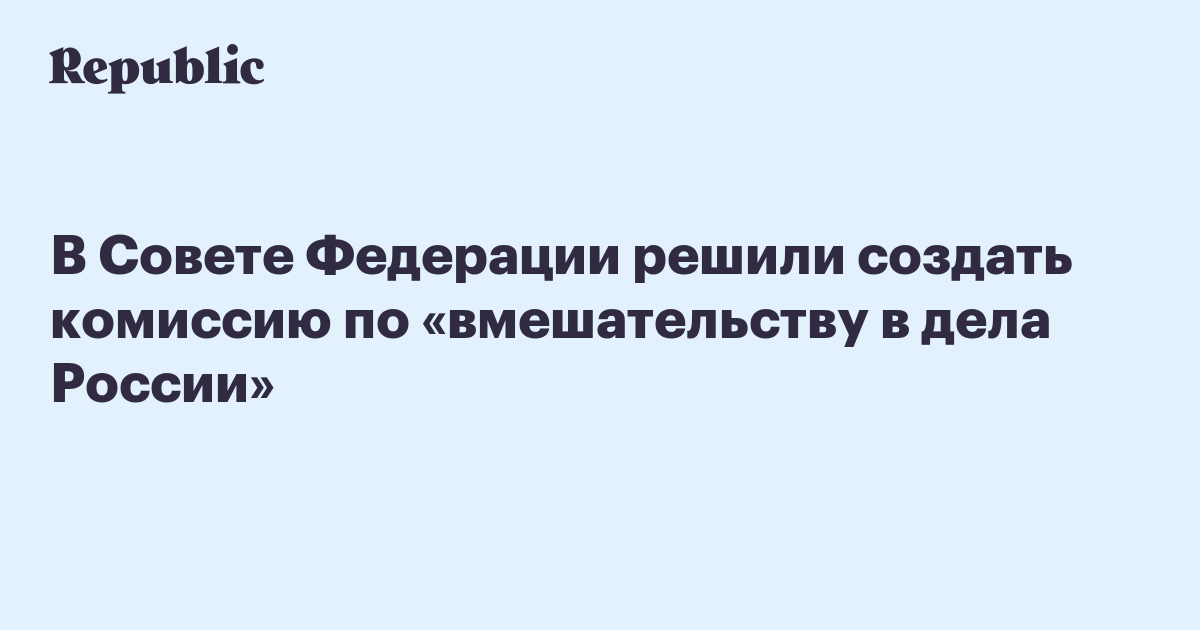 В Совете Федерации решили создать комиссию по «вмешательству в дела России»