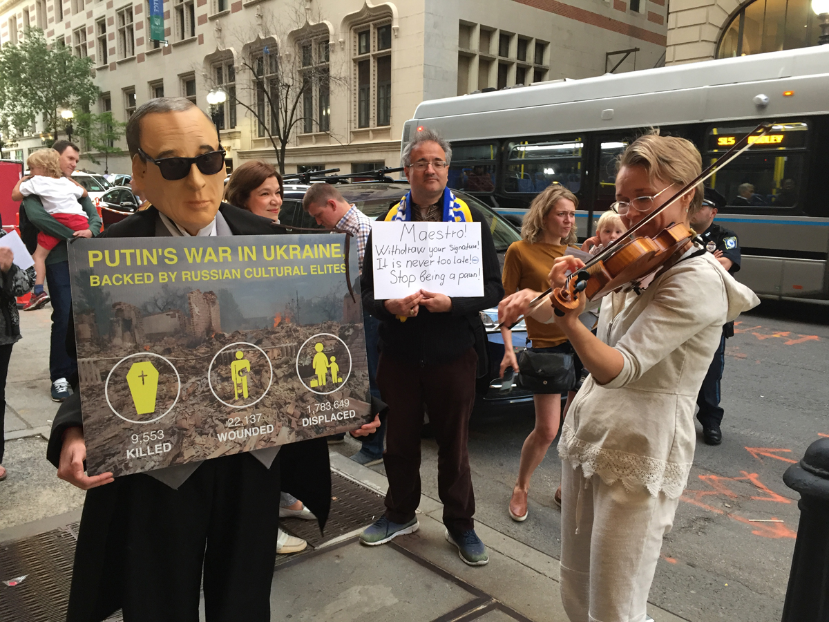 Зрители останавливались возле инсталляции, аплодировали скрипачке и брали листовки со статьей из The Boston Globe. Практически на 100% это были русскоязычные пенсионеры, которые смотрят только российское ТВ. Для многих из них было открытием то, о чем написала газета. Некоторые даже не верили, что маэстро действительно подписал письмо. Участники протеста объясняли, что это протест не против России и русского искусства, а только против тех деятелей искусства, которые активно занимаются пропагандой.