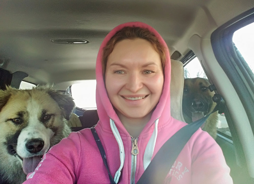 Когда щенки выбежали играть к Оксане, она надела на них шлейки, напоила таблетками от клещей, посадила в машину и повезла в ветеринарную клинику. Грязные и довольные щенки потявкивали всю дорогу — они впервые ехали на машине с окнами.